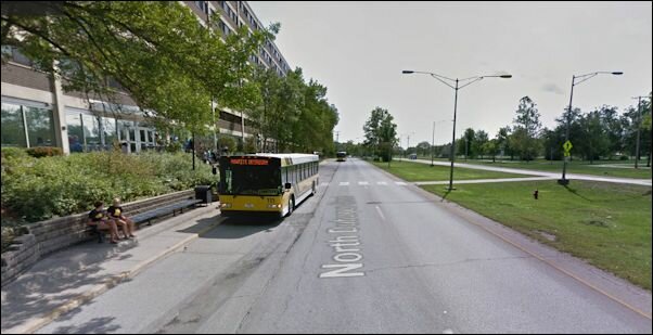 When you get to the bus stop at the University, you are injecting a little bit of street function into the roadway (but just a little bit). There are some design approaches that could be used here to keep the road function strong yet accommodate the university. A median between the bus stop lane and the two travel lanes would allow traffic to continue at high speeds along the road while having the street function where it is needed for the bus pickup. The more difficult question is how to get students over to the recreational trail on the west side of the roadway. In a world where we don’t care about roads/streets, we do what they have done here already, which is to pretend there is no distinction and just run the sidewalk perpendicular to the road. Maybe traffic counts are low enough – and students agile enough – where they can judge the gaps (although that might be a little more dangerous Saturday nights). Ultimately, if Dubuque is going to function as a road through this section, there should not be a pedestrian crossing unless it is grade separated (bridge or tunnel).
